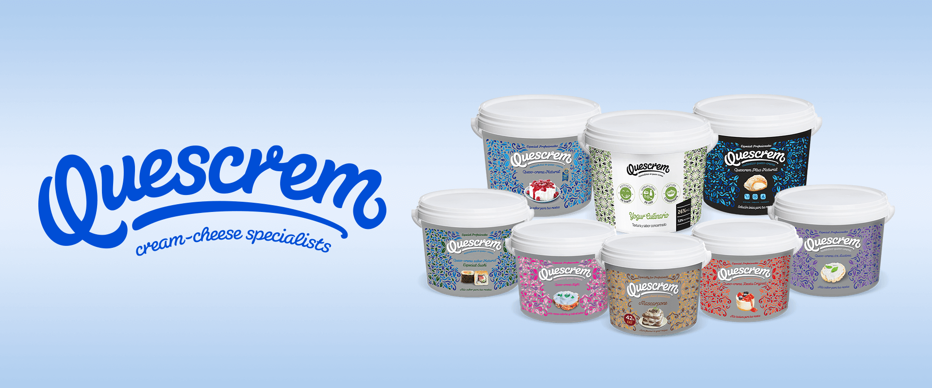 QUESCREM來自西班牙加利西亞的乳業公司第一家專業化生產奶油奶酪和評為以技術為基礎的公司。品牌主要從事奶油乾酪和馬斯卡彭尼的研發、生產和銷售工作。以專業製造各式種類的乳酪產品,如奶油乳酪,高熔點乳酪,馬斯卡邦乳酪等等為主。公司有20%的員工屬於研發部門,利用當地天然和新鮮的乳品資源,開發只屬於QUESCREM 的獨特口味。